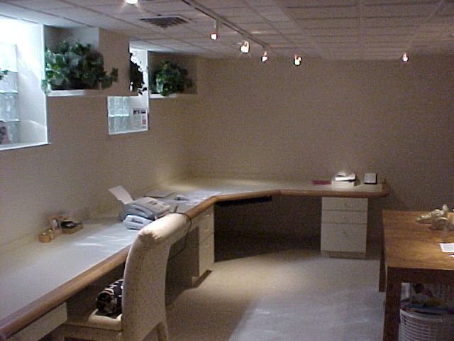 New glass block windows, Track lighting and custom desk tops.